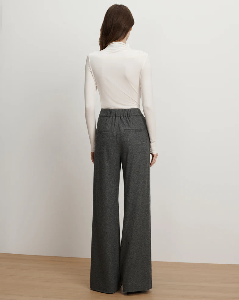 Pierna ancha, con pliegues delanteros